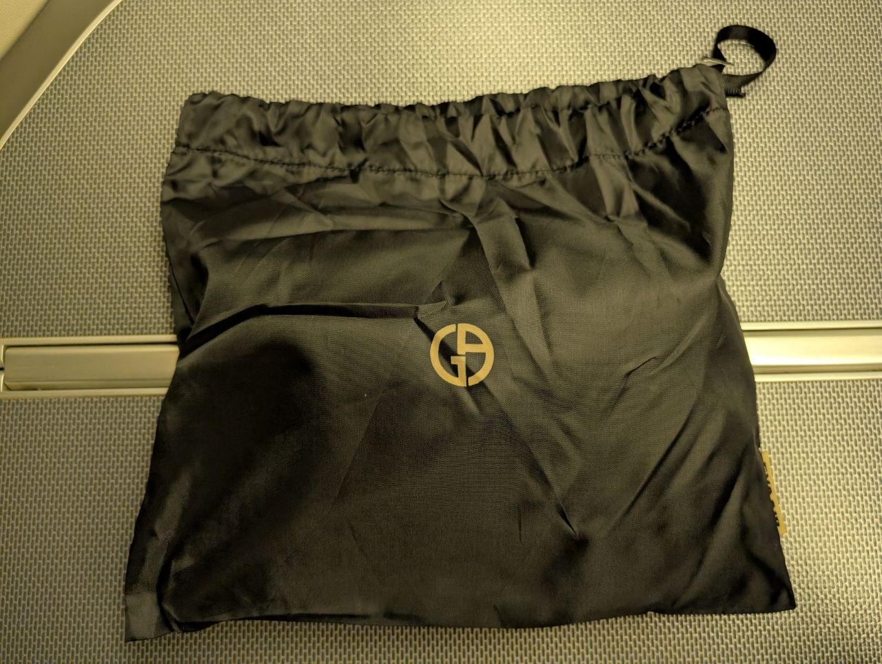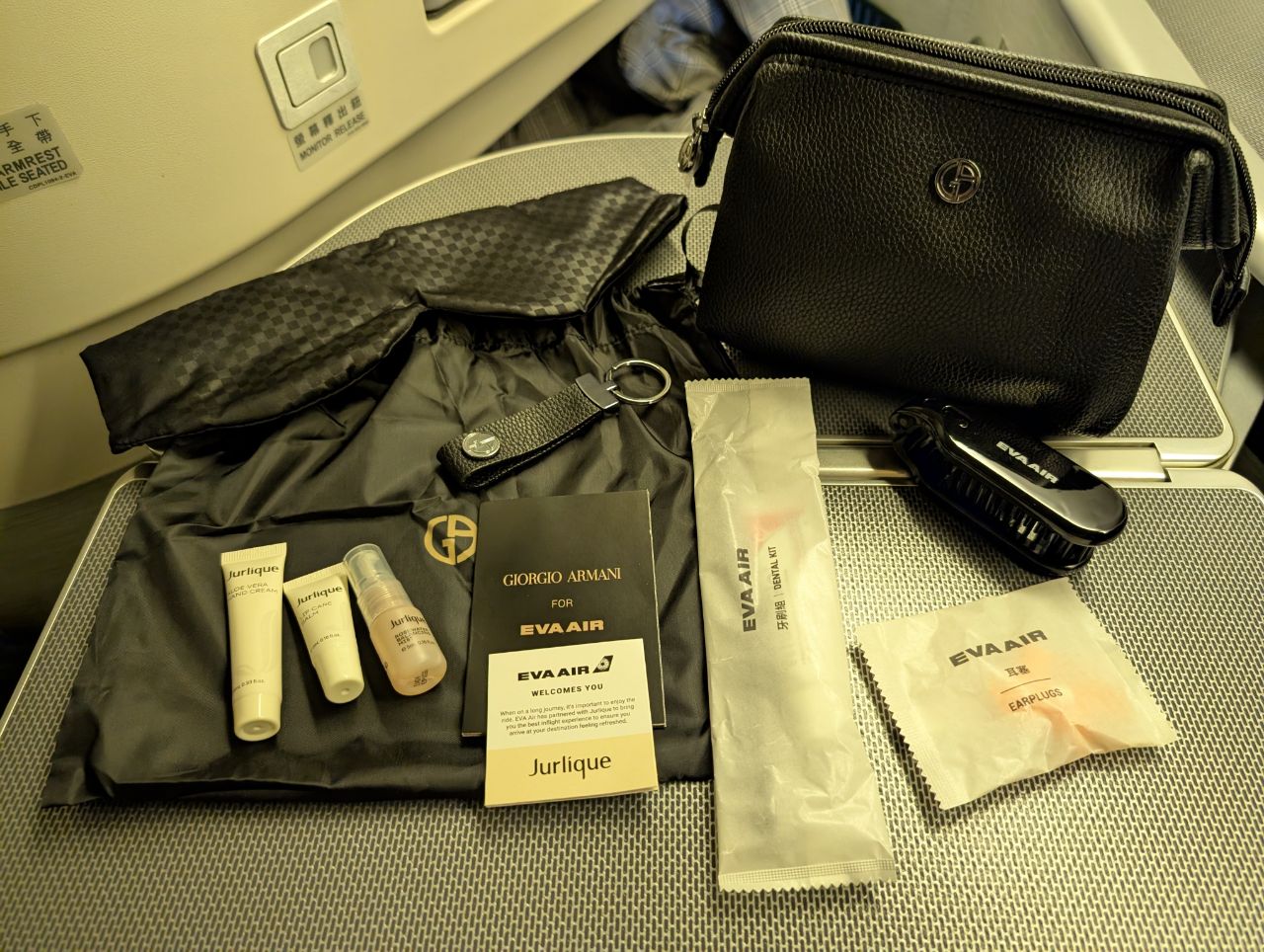 EVA Air Business Class passengers receive amenity kits from Giorgio Armani.