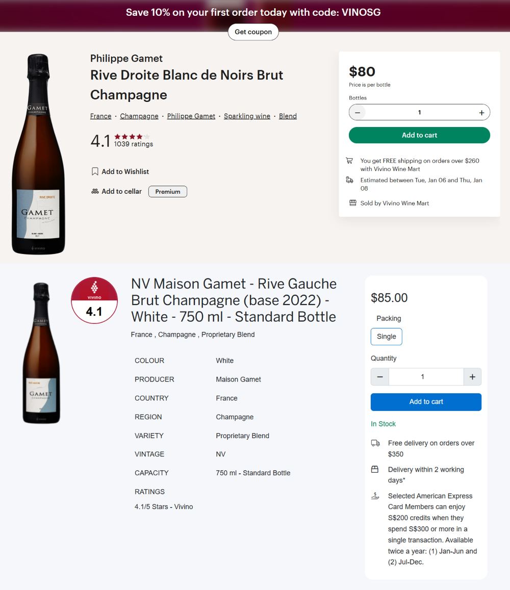 I have not done a detailed comparison for the new Platinum Wine Club portal, but there are definitely cases where this happens still. For example, this bottle of champagne costs S$80 on Vivino’s public website (with free delivery from S$260), but S$85 on the Platinum Wine Club (with free delivery from S$350).