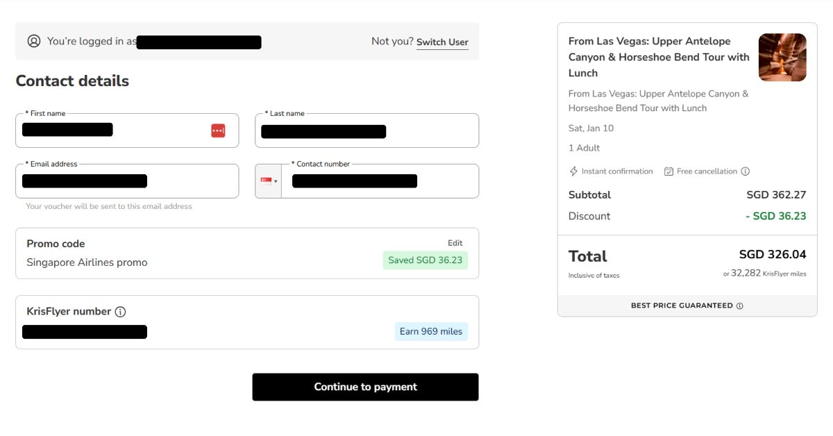 It’s worth noting that only the Pelago website and mobile app support promo code use, and therefore you will not be able to stack the SIA/Scoot passenger discount with Kris+ earning (the current promotion for January 2026 offers an extra 6 mpd).