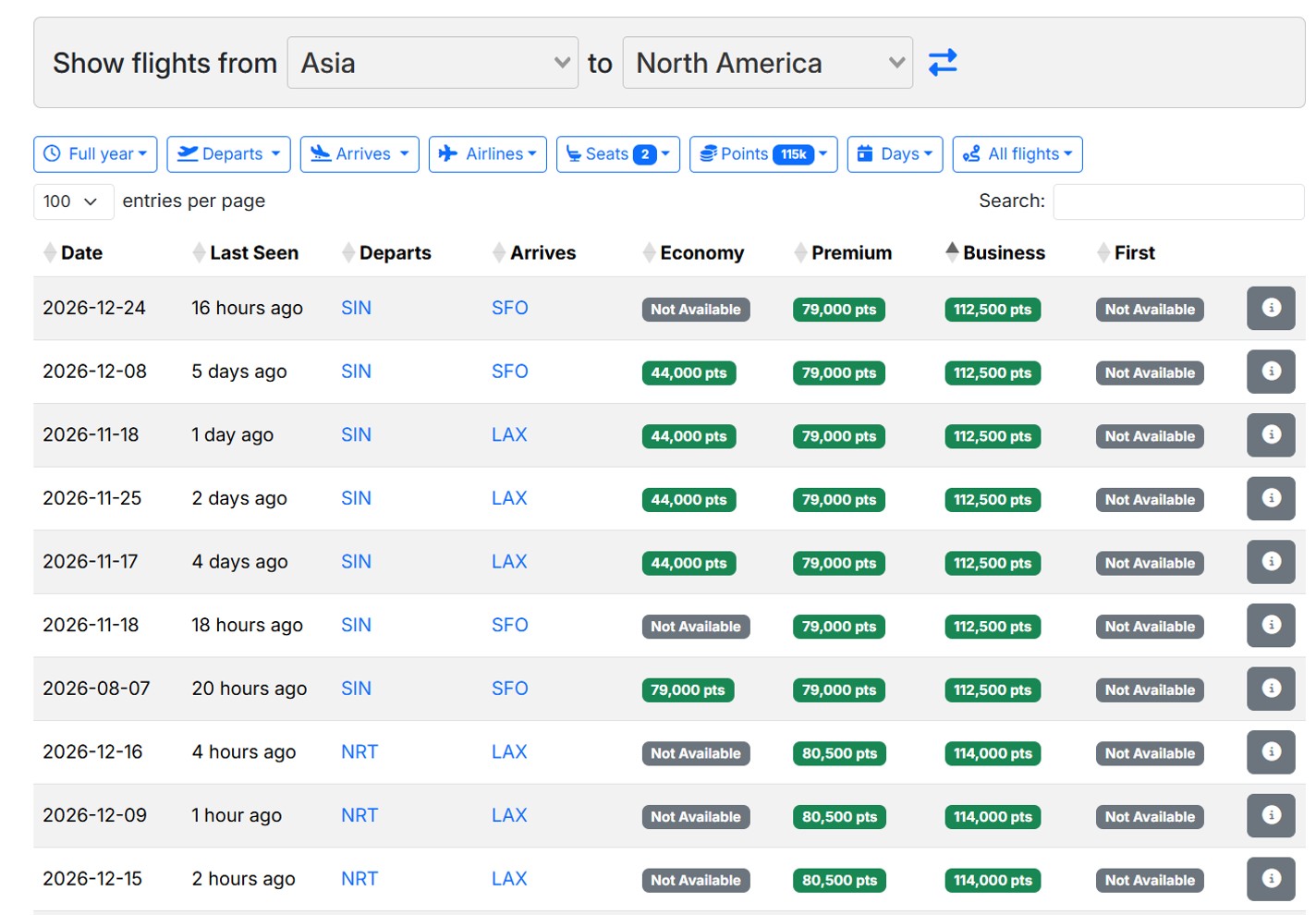 If you need a quick and painless way of hunting down Singapore Airlines Saver awards without guess and checking, Seats.Aero can do the heavy lifting for you.