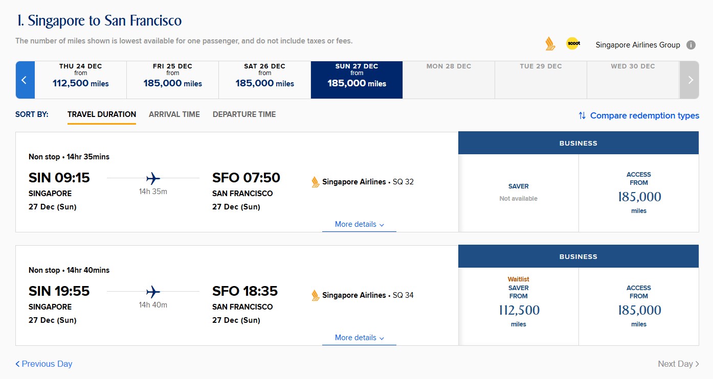 But if you’ve read the online chatter recently, many people are complaining that premium cabin Saver awards have vanished, and pointing the finger at Access as the culprit. SIA, so the narrative goes, is deliberately throttling Saver awards in order to force members to burn more miles on Access!
