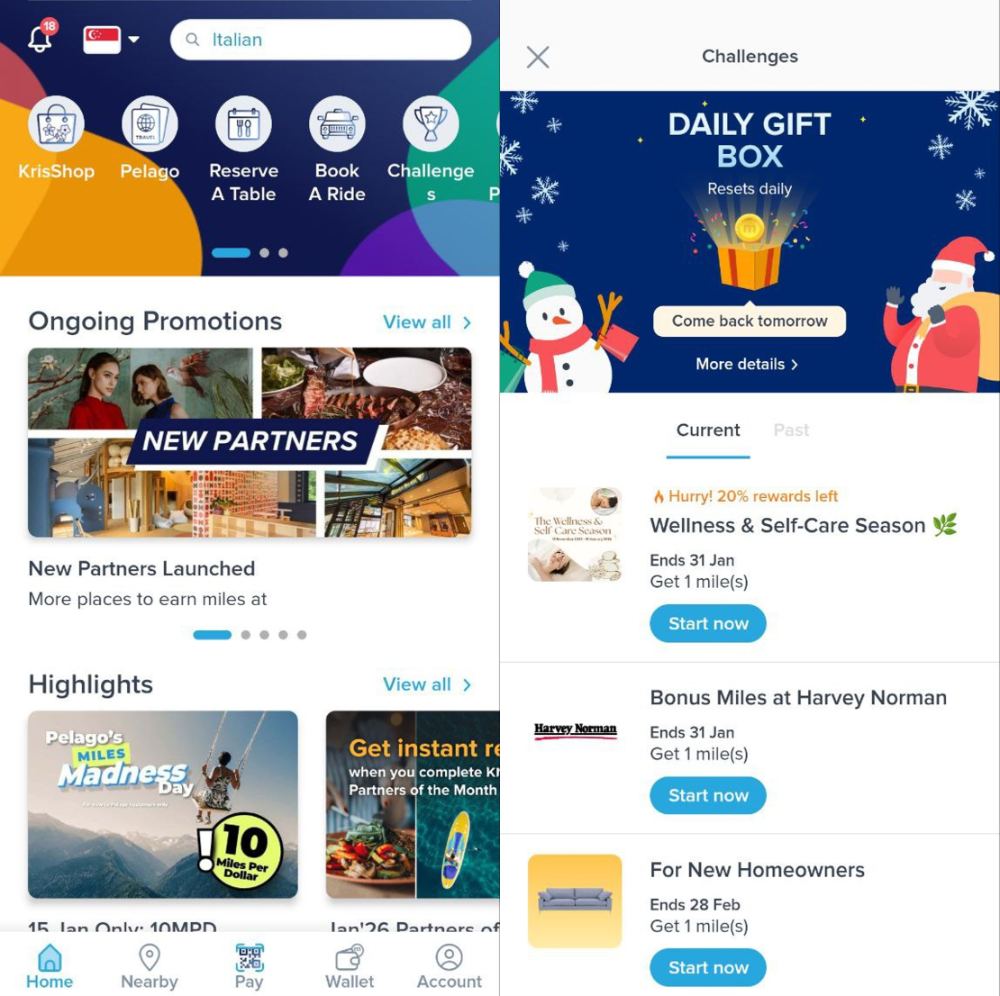 Registration is required for both offers, and can be done on the Kris+ app, under the Challenges section, or under the Highlights section of the homepage.