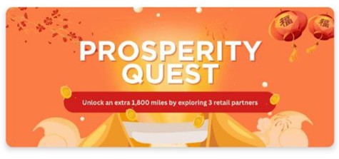 The second Challenge, Prosperity Quest, offers 1,800 bonus miles for shopping at three different participating merchants, with a minimum spend of S$60 at each.