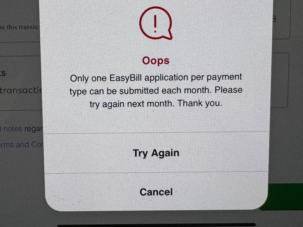 While there previously wasn’t any restriction on the frequency of EasyBill use, at some point in December 2025, Standard Chartered added a cap of one bill payment per category, per month.