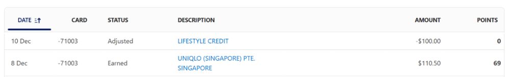 This offers cardholders a half-yearly S$100 statement credit, valid at a wide range of participating fashion and dining merchants including Club 21, Decathlon, MUJI, Peach Garden, Crystal Jade, Imperial Treasure and Pu Tien.