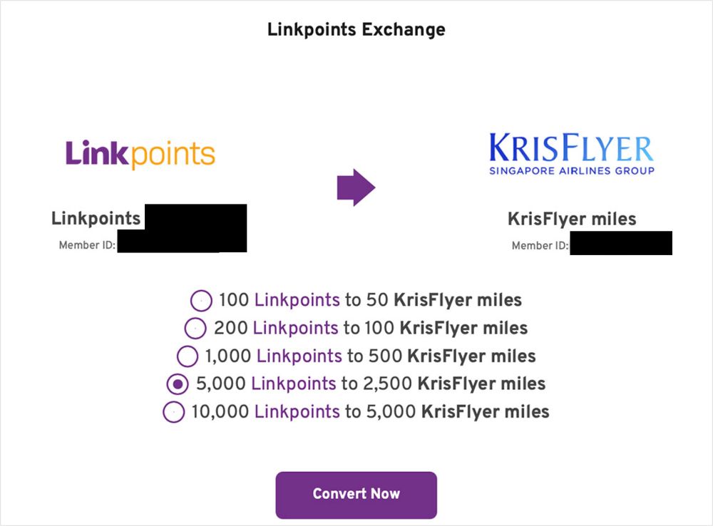 To convert LinkPoints to KrisFlyer miles, visit the KrisFlyer transfers page. You’ll see the option to link the two accounts (names on both accounts must match), after which you can make transfers.