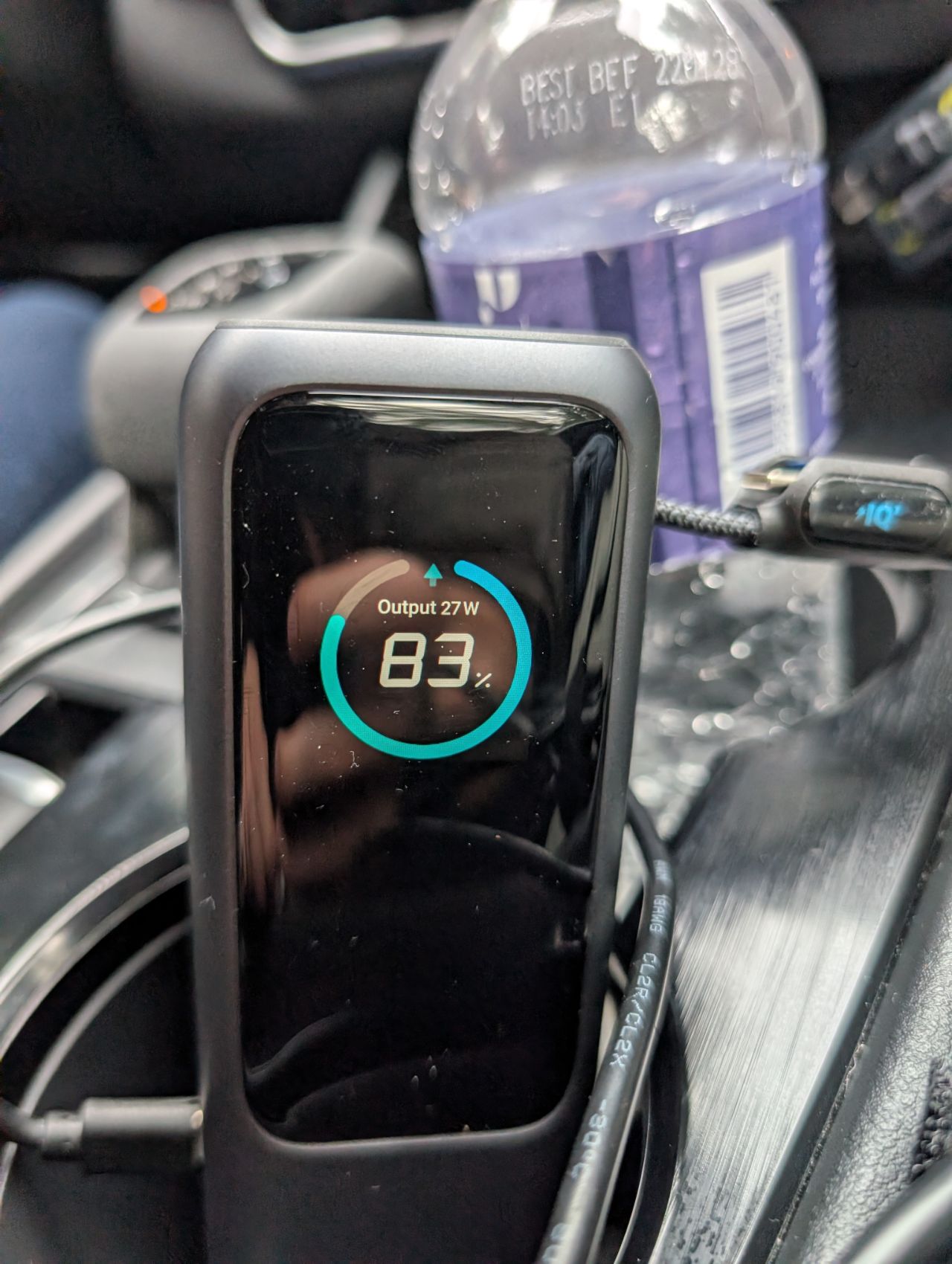 Alternatively, you can use the car’s cigarette lighter port, with an adapter that supports 100W. CascadiaLink provided one, but I also brought a UGREEN 130W charger that worked just fine.