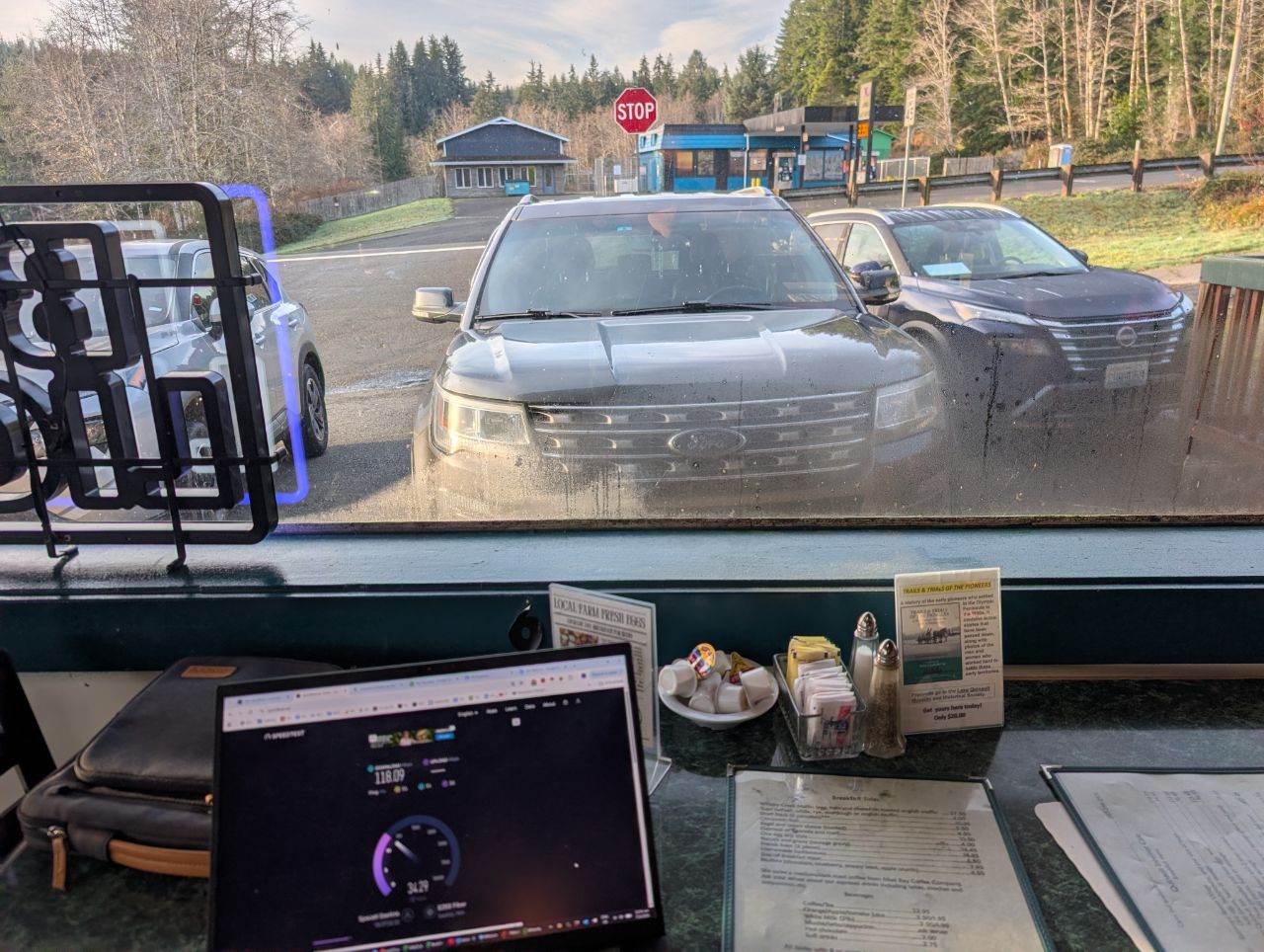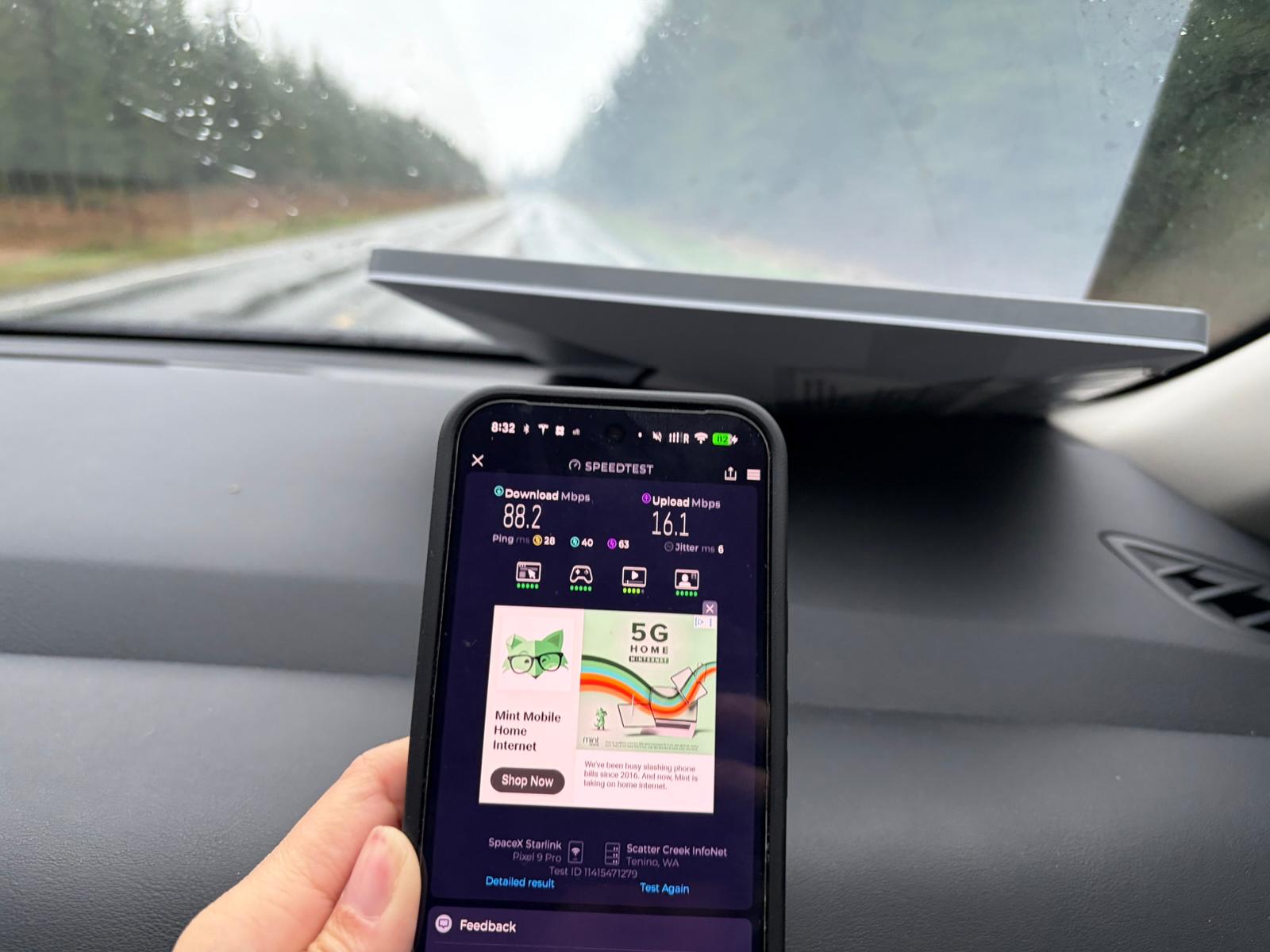 I used Starlink Mini throughout the Olympic Peninsula (we drove in a counterclockwise direction, from Seattle > Port Angeles > Forks > Hoh > Kalaloch > Lake Quinault), and on the whole, the experience was excellent.