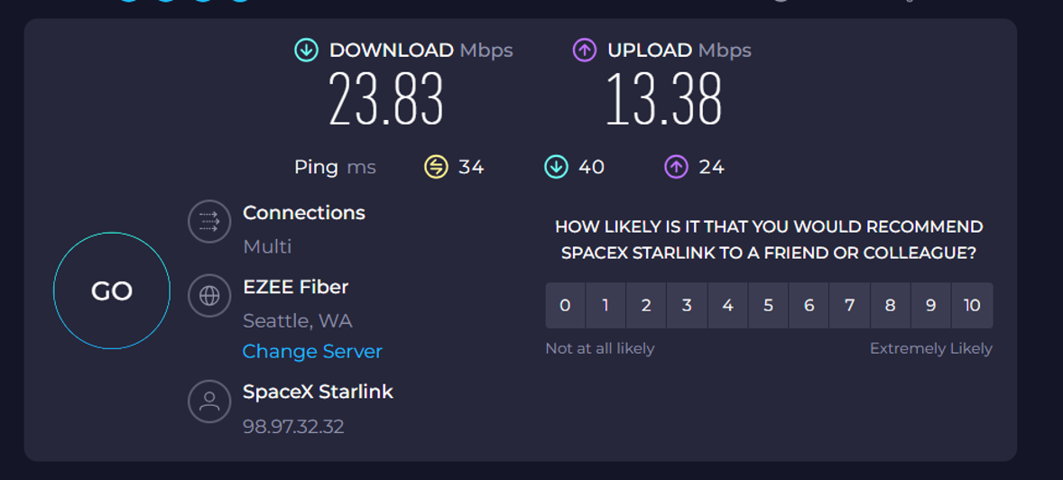 Getting online was a breeze. All I had to do was plug in the power, wait 1-2 minutes for it to find satellites, and then start browsing. You can use the Starlink app to further refine and adjust the positioning of the dish for optimum connection, but I found it unnecessary.