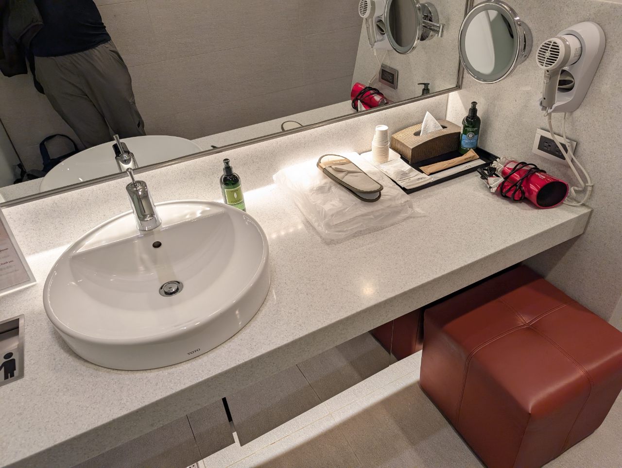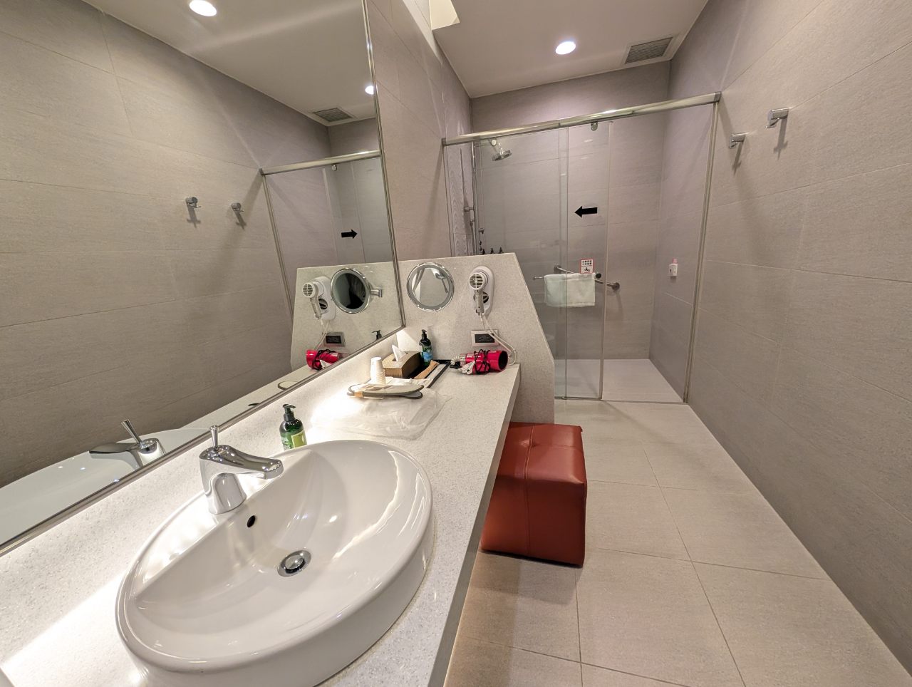The four shower rooms have names like Metro Forest, Smile Zone, Fantasy Flow and Star Drops, but if there’s a theming here, I don’t see it. This looked like a standard airline lounge bathroom- clean, but not much in the way of personality. I *think* I got Metro Forest, but again, it’s hard to tell because they all look similar.