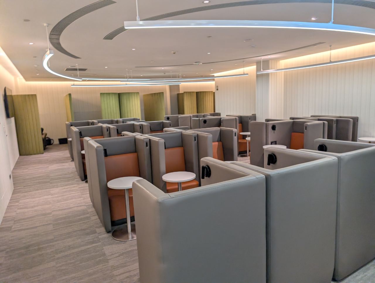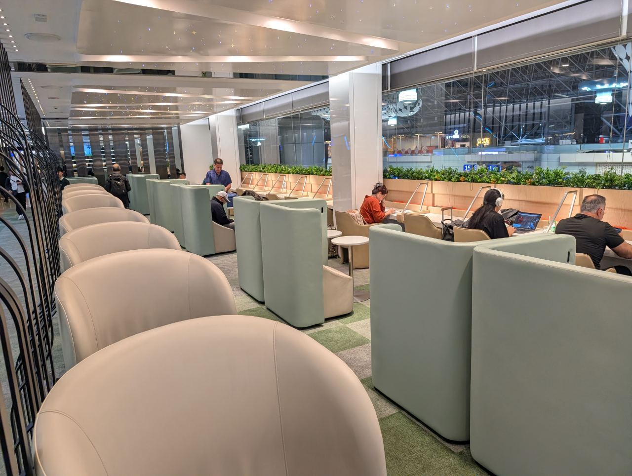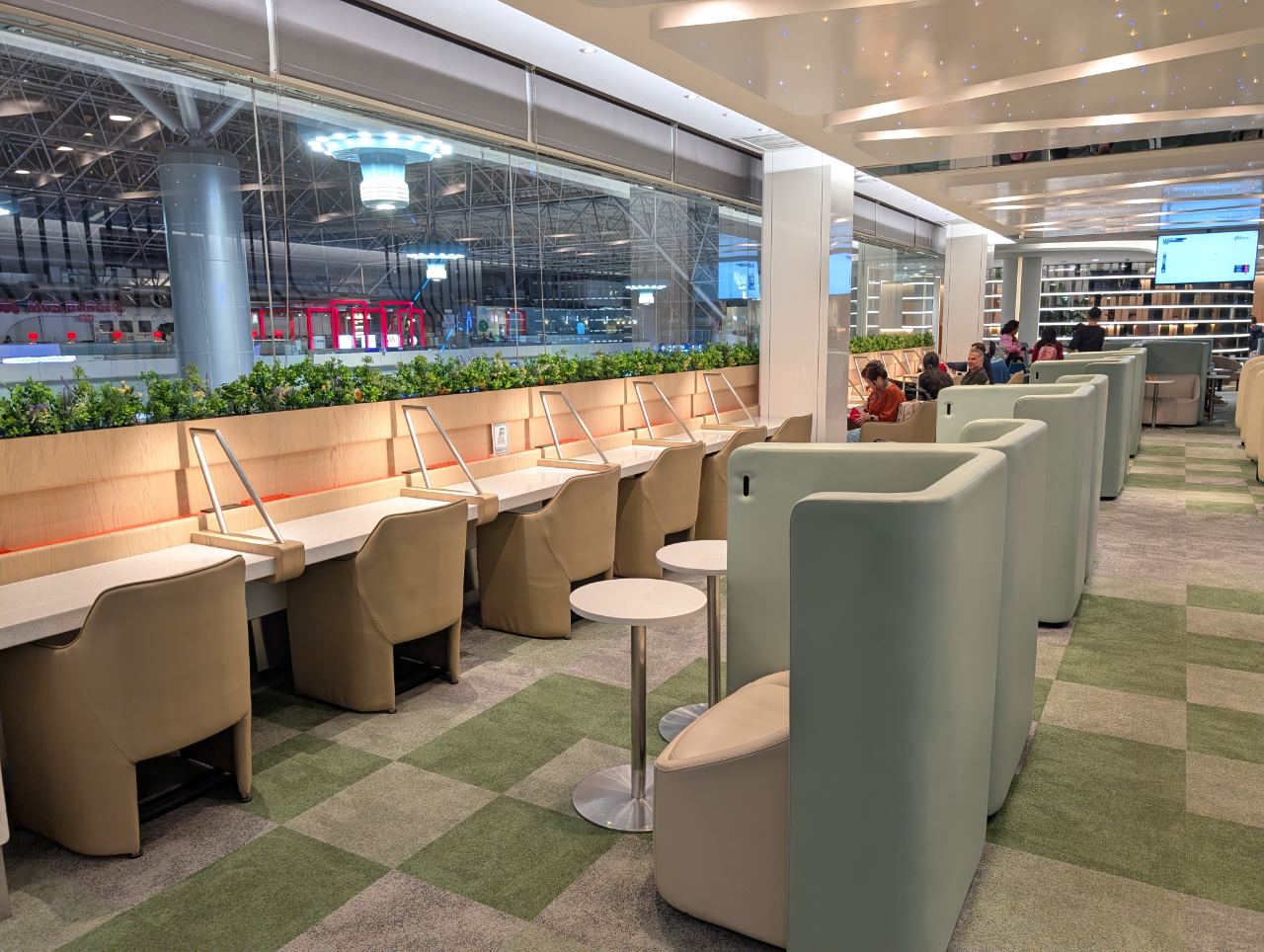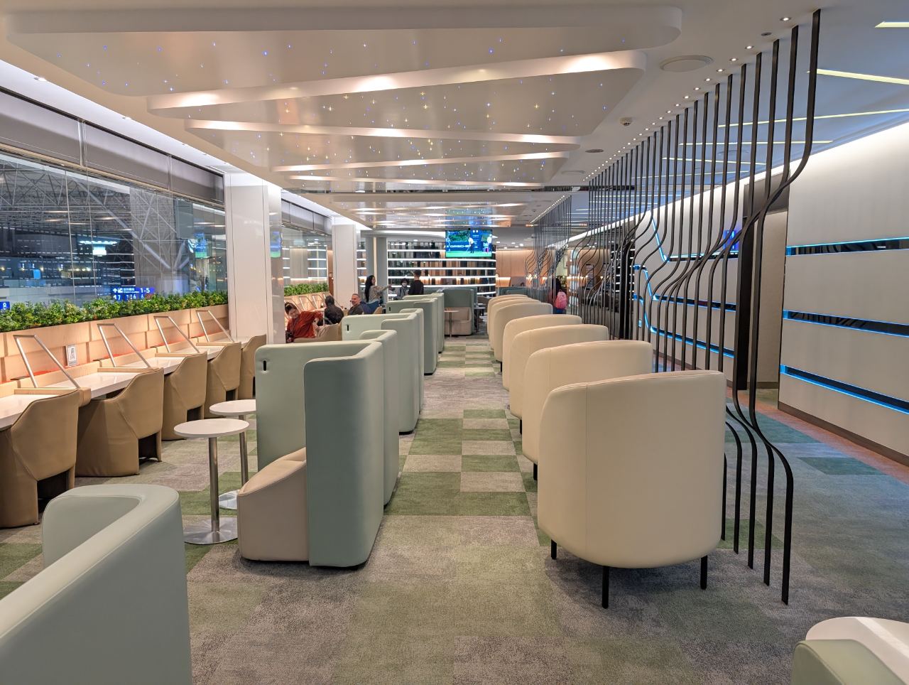 Further in, the lounge widens into an area with more seating pods, including several clustered around a tree-like column. Am I imagining things, or did this use to be LED lit in the past? I distinctly remember there being a “Tron-tree”…