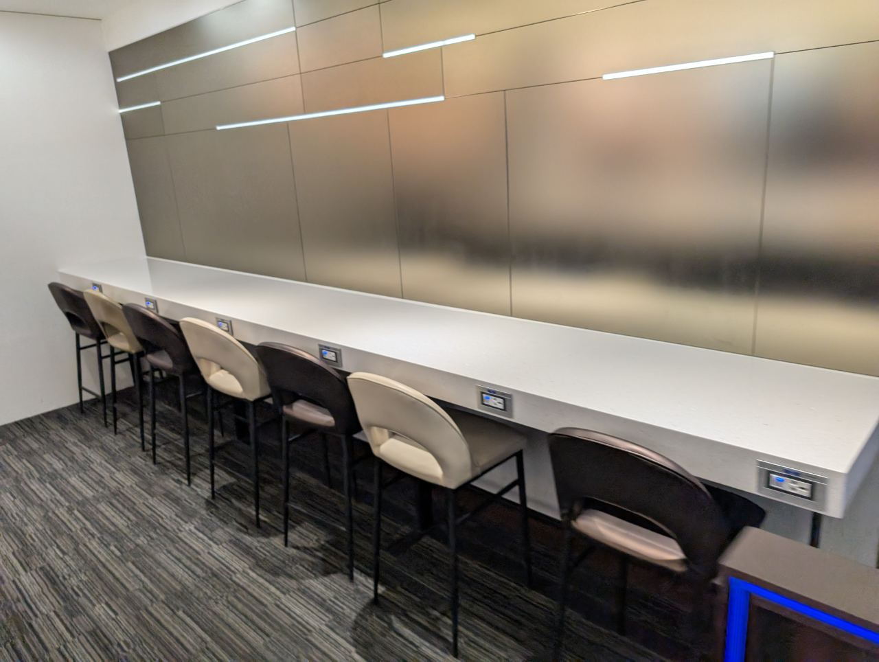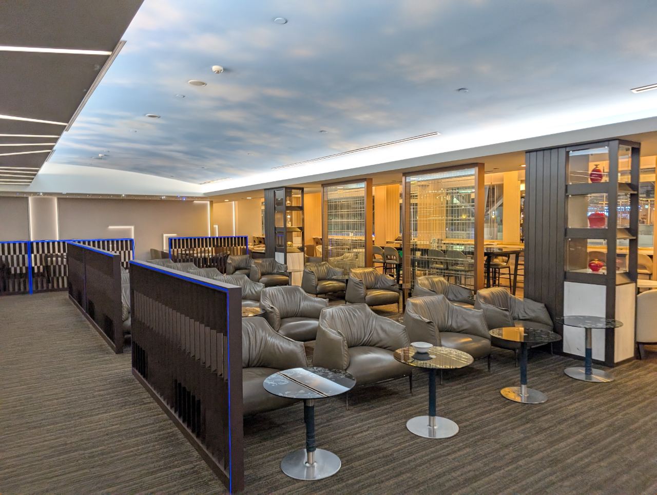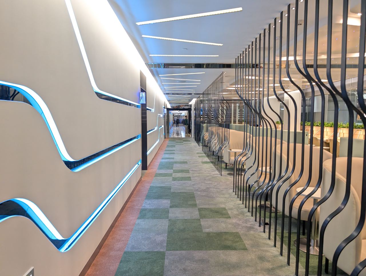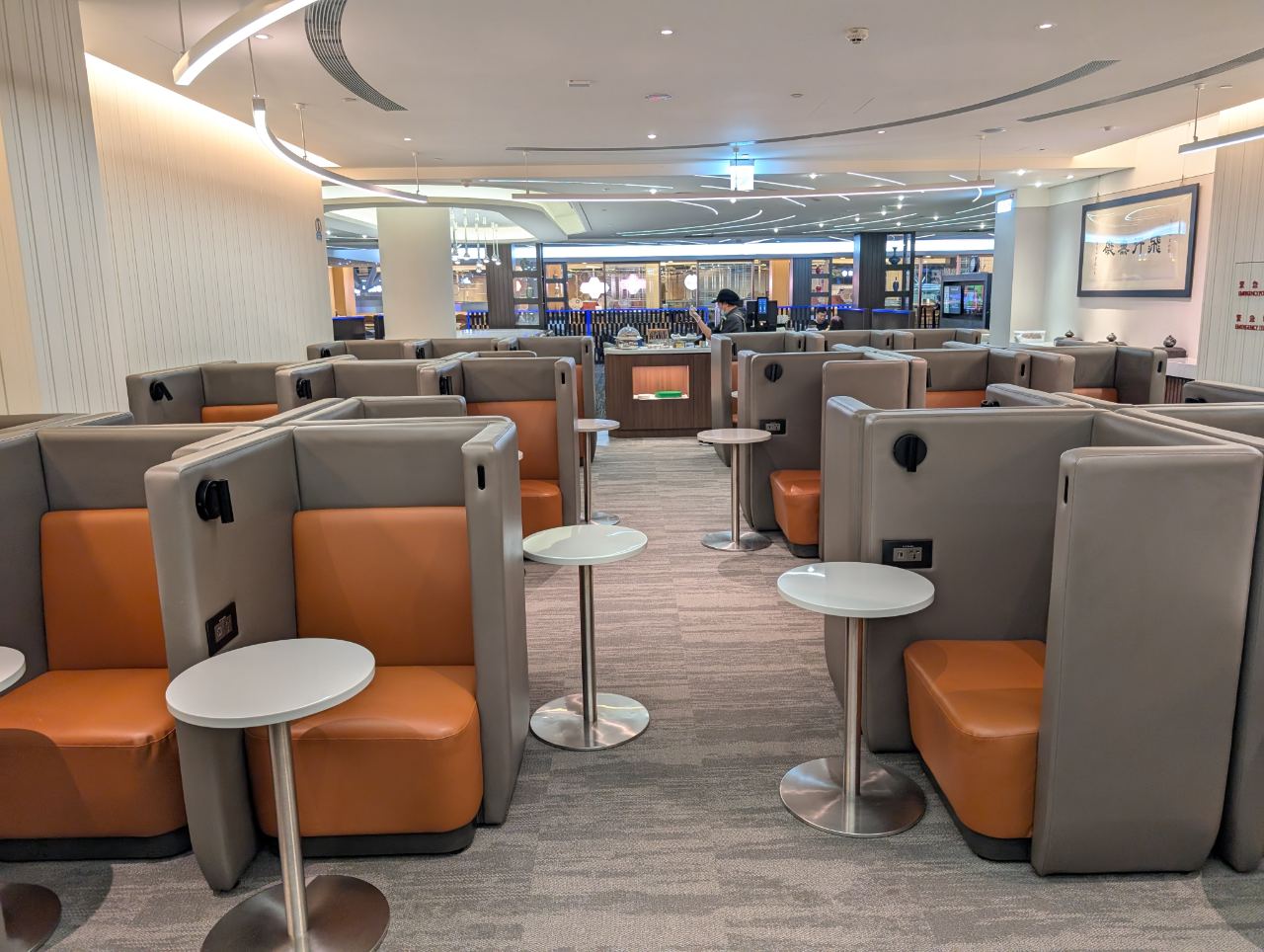 Further in, the lounge widens into an area with more seating pods, including several clustered around a tree-like column. Am I imagining things, or did this use to be LED lit in the past? I distinctly remember there being a “Tron-tree”…