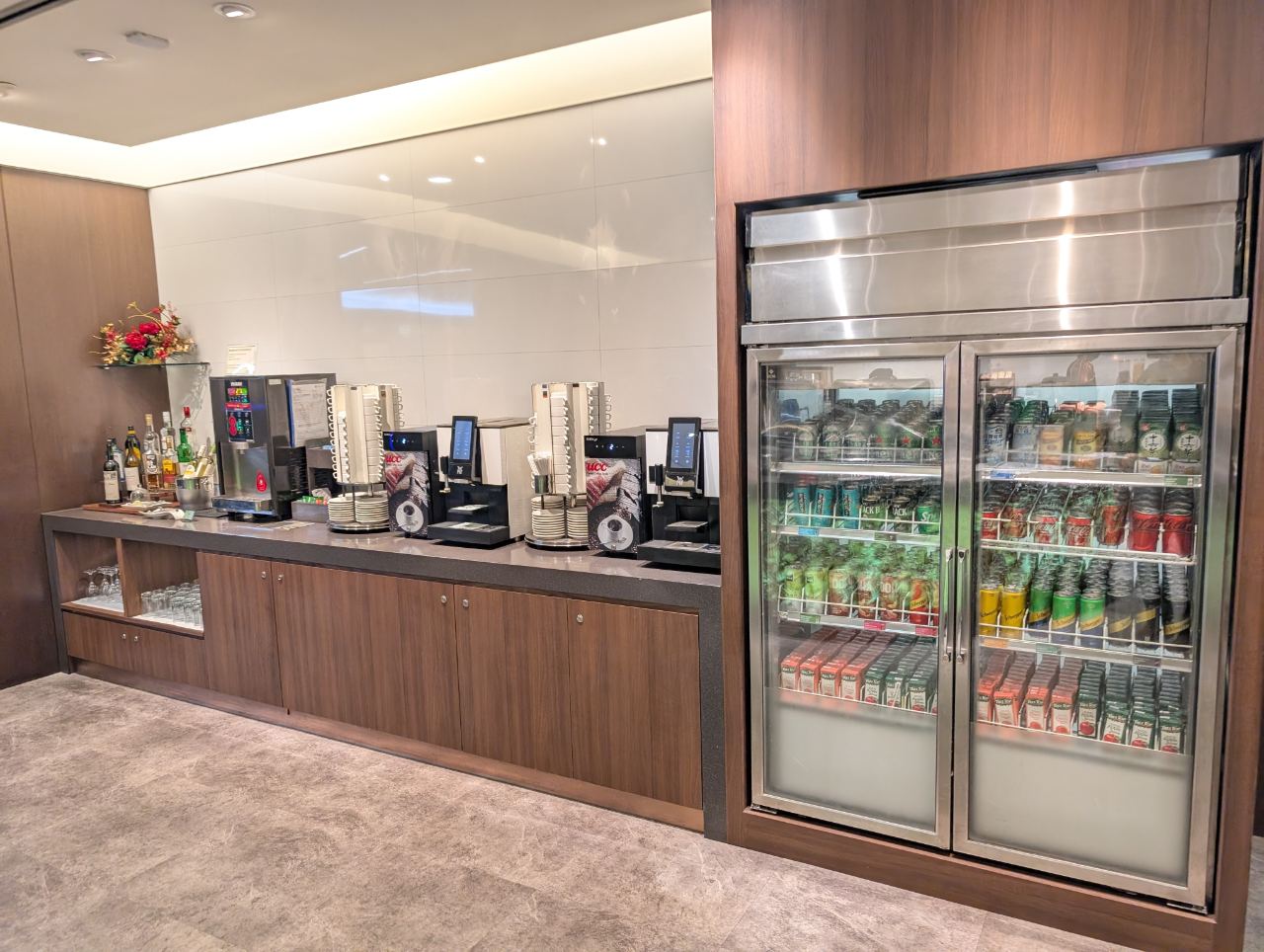 As for the drinks, the lounge offered the usual assortment of soft drinks, mixers, canned beer, juice cartons, as well as coffee machines.
