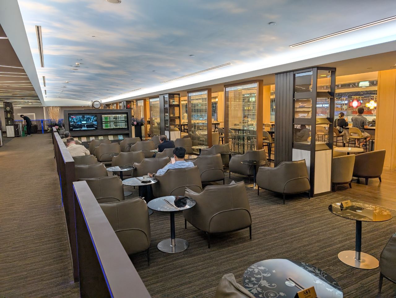 The lounge overlooks the check-in area, so during the day you should be able to enjoy some natural light from the glass panels in the terminal’s ceiling.