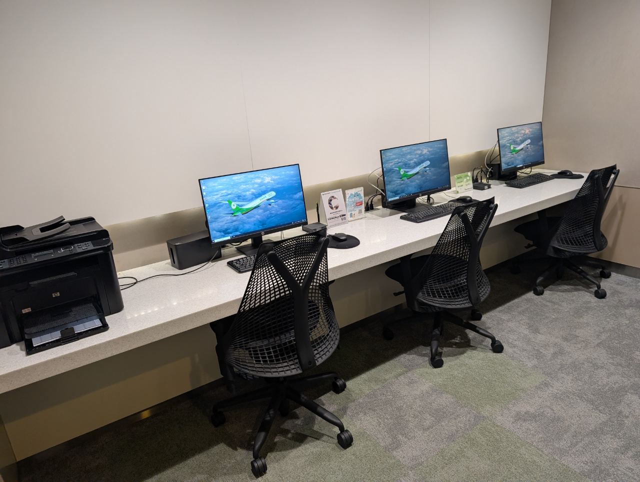 The lounge also has a business centre with three desktop computers and complimentary printing facilities.