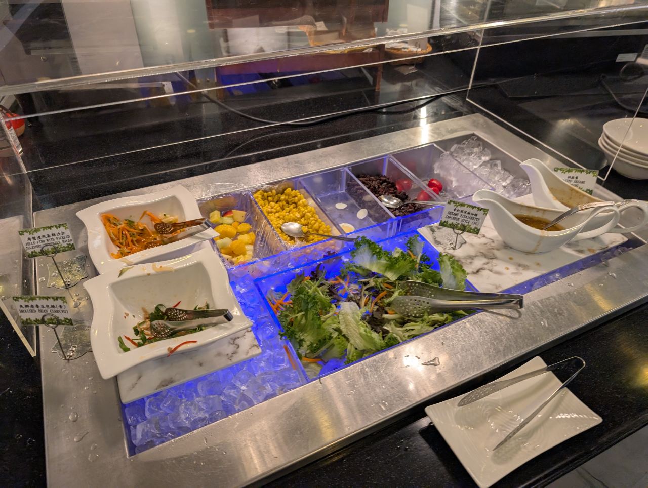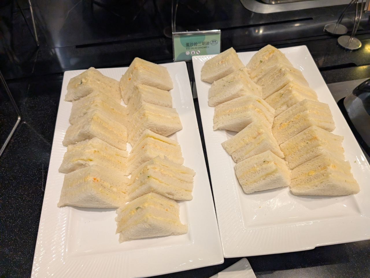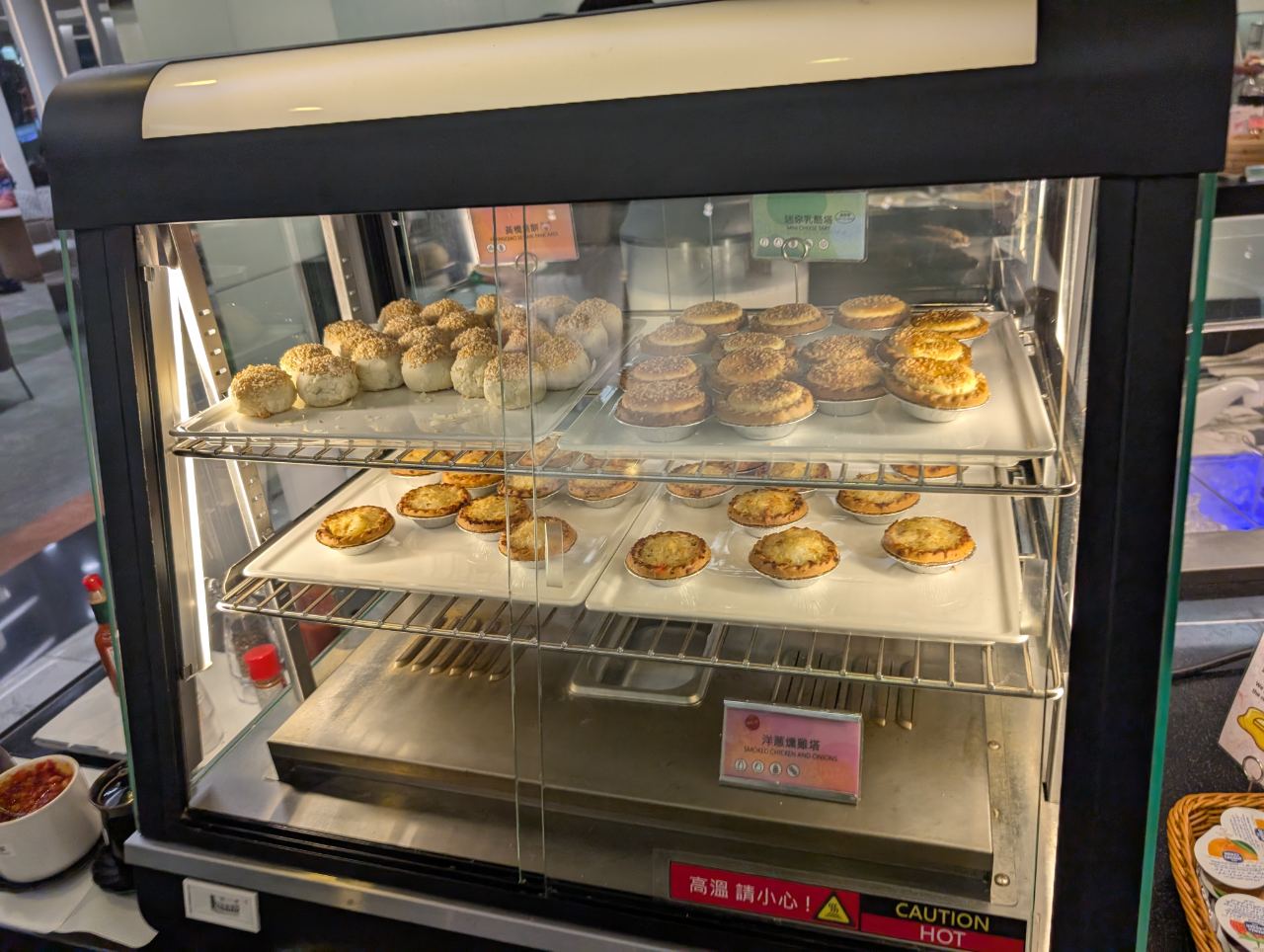There was a messy-looking salad bar, some cold sandwiches, various breads, egg tarts, yoghurt and desserts.