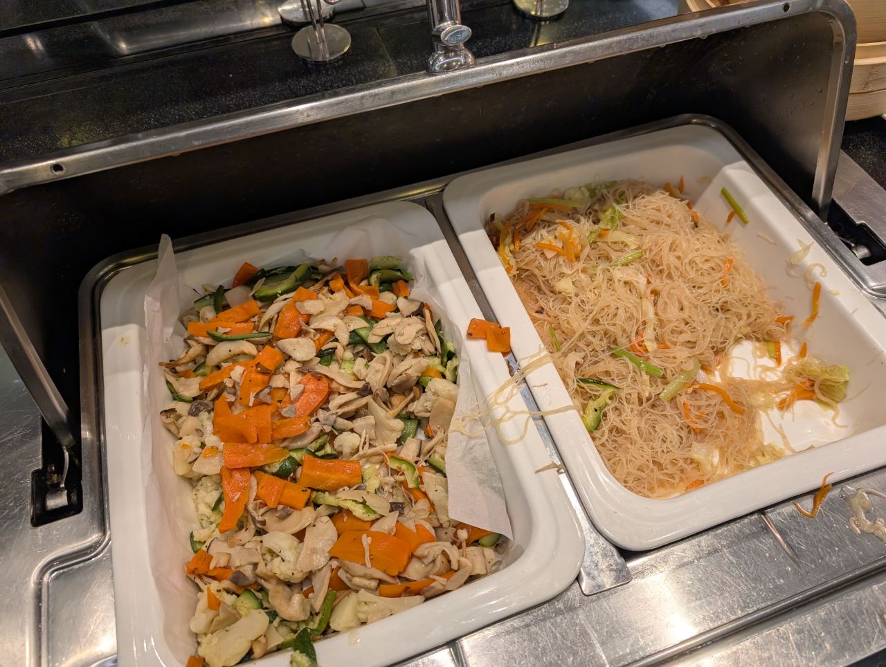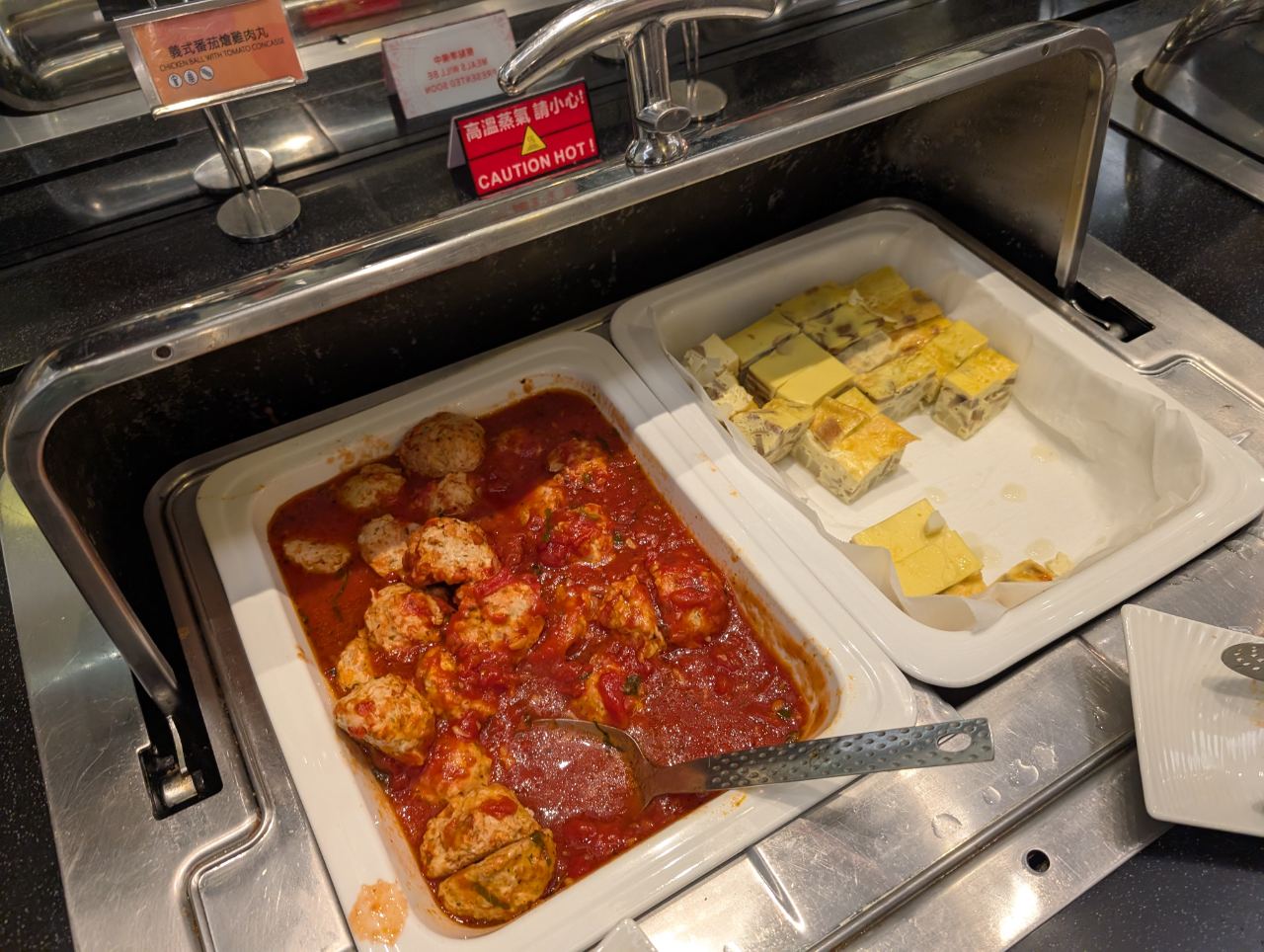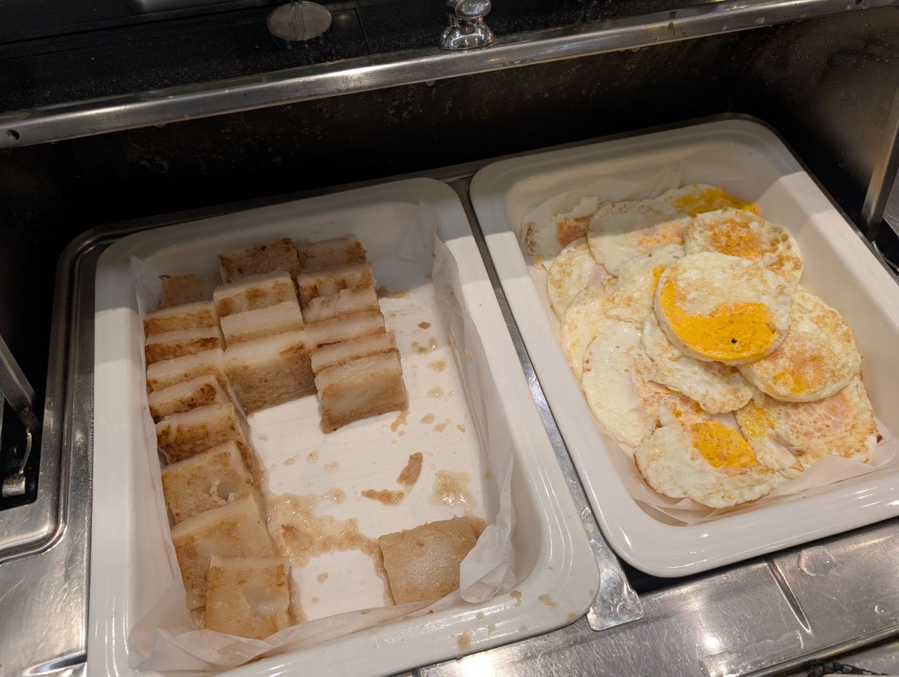 Hot items included frittatas, fried eggs, radish cake, a congee station and dim sum. Nothing looked particularly appetising.