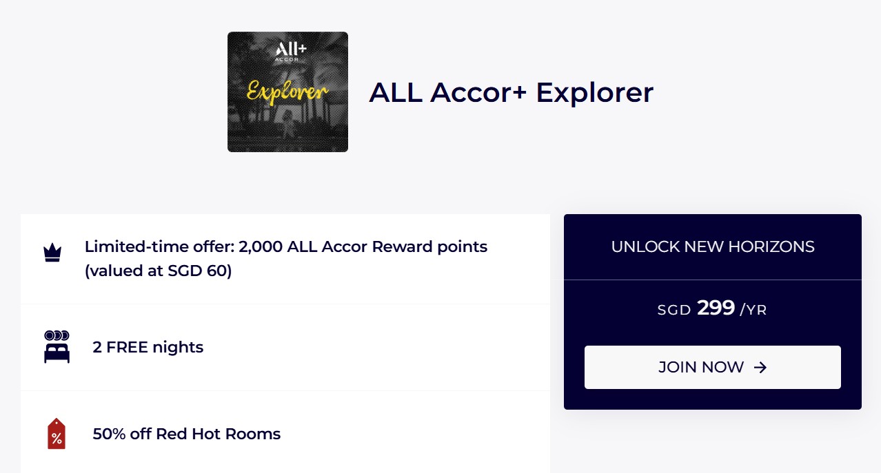 ALL Accor+ Explorer has launched a new sale, which offers 2,000 Accor points (worth S$60) for new sign-ups.