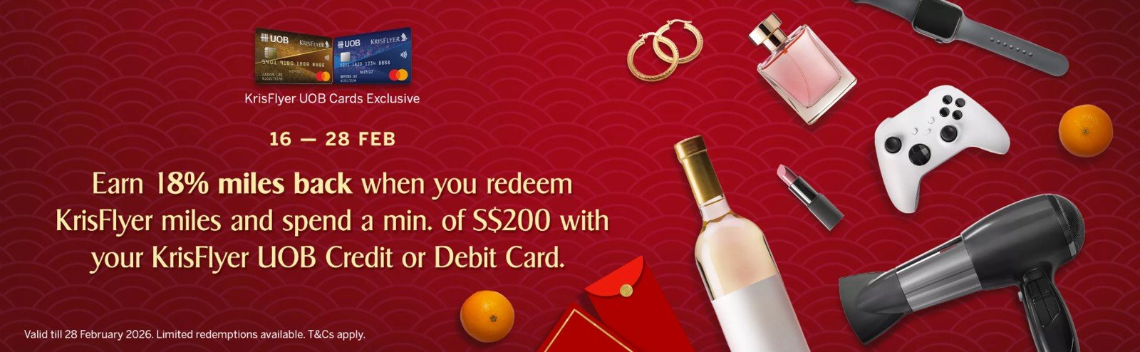 This requires a minimum spend of S$200 on your KrisFlyer UOB Credit or Debit Card, and a minimum redemption of 100 KrisFlyer miles.