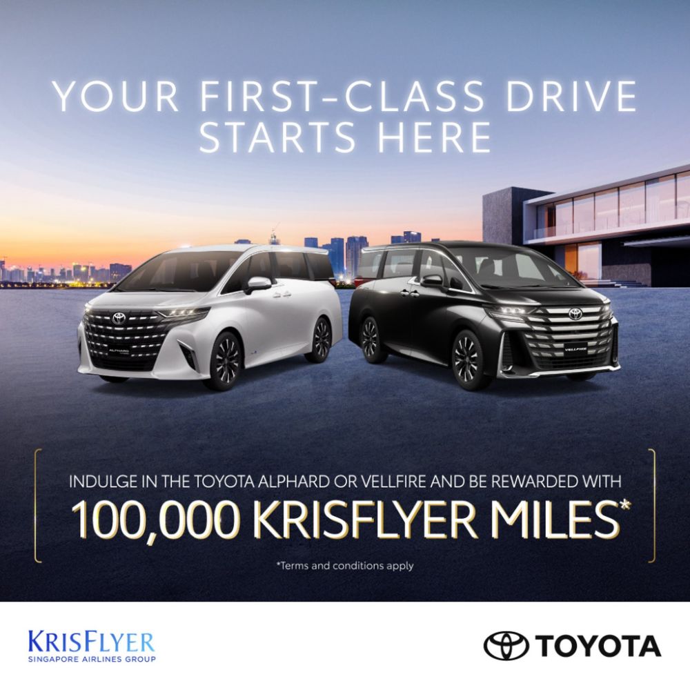 - Borneo Motors: Earn 100,000 KrisFlyer miles on a purchase of a Toyota Alphard or Vellfire
