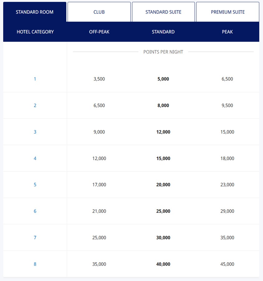 All award charts will be affected, whether it’s standard rooms, club rooms, standard suites, premium suites, all-inclusive resorts and Miraval Resorts.