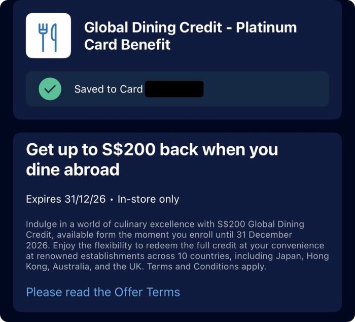 While the Global Dining credit survived the cull, cardmembers had to wait until 2 March 2026 before they could put it to use.