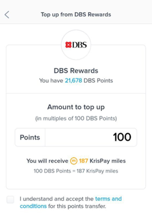 - Transfers via Kris+ have a minimum block of 100 DBS Points, while transfers via the DBS rewards portal require a minimum block of 5,000 DBS Points