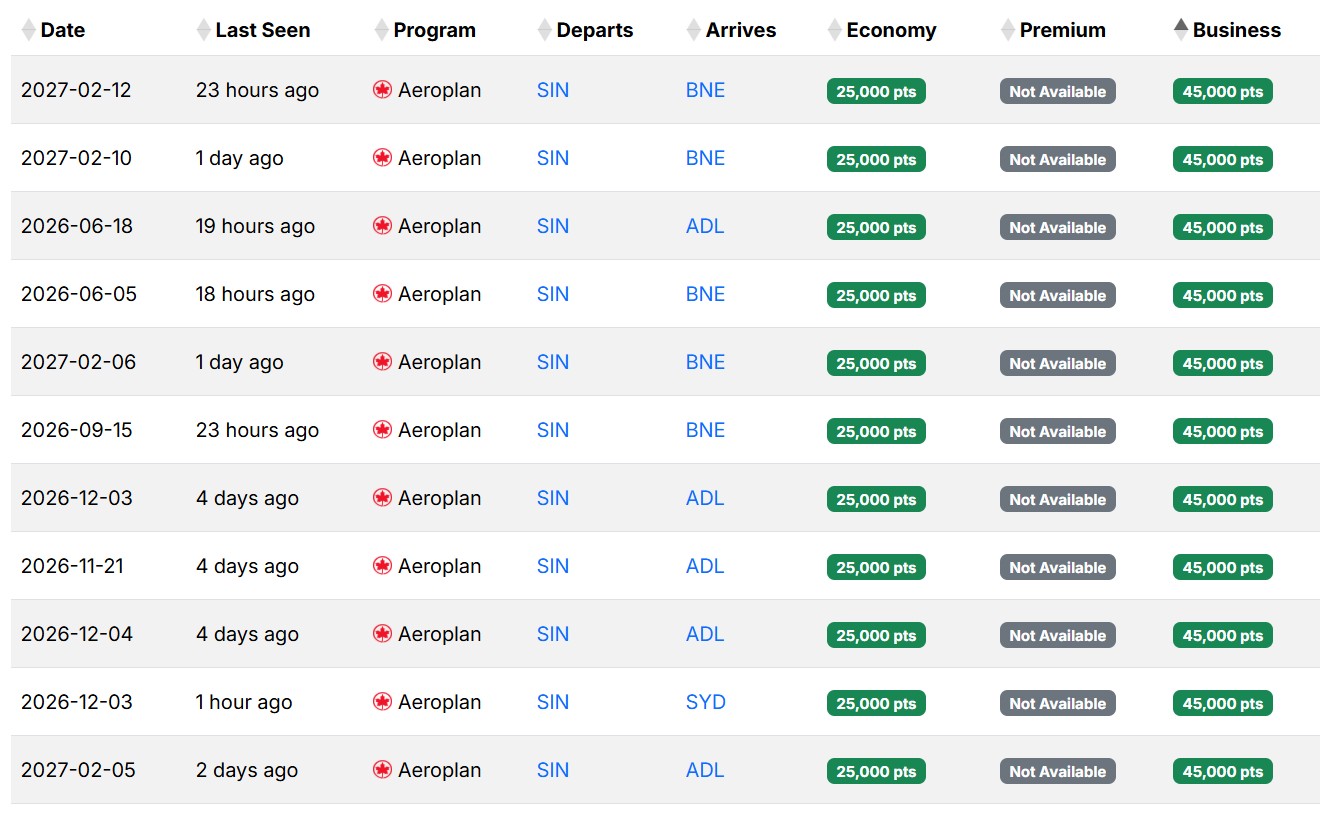 This is slightly lower than the previous sale, which offered a 100% bonus. That said, Singapore Airlines Business Class space continues to be bookable through Aeroplan, with Australia and Japan awards available at just 45,000 miles (S$828 in points).