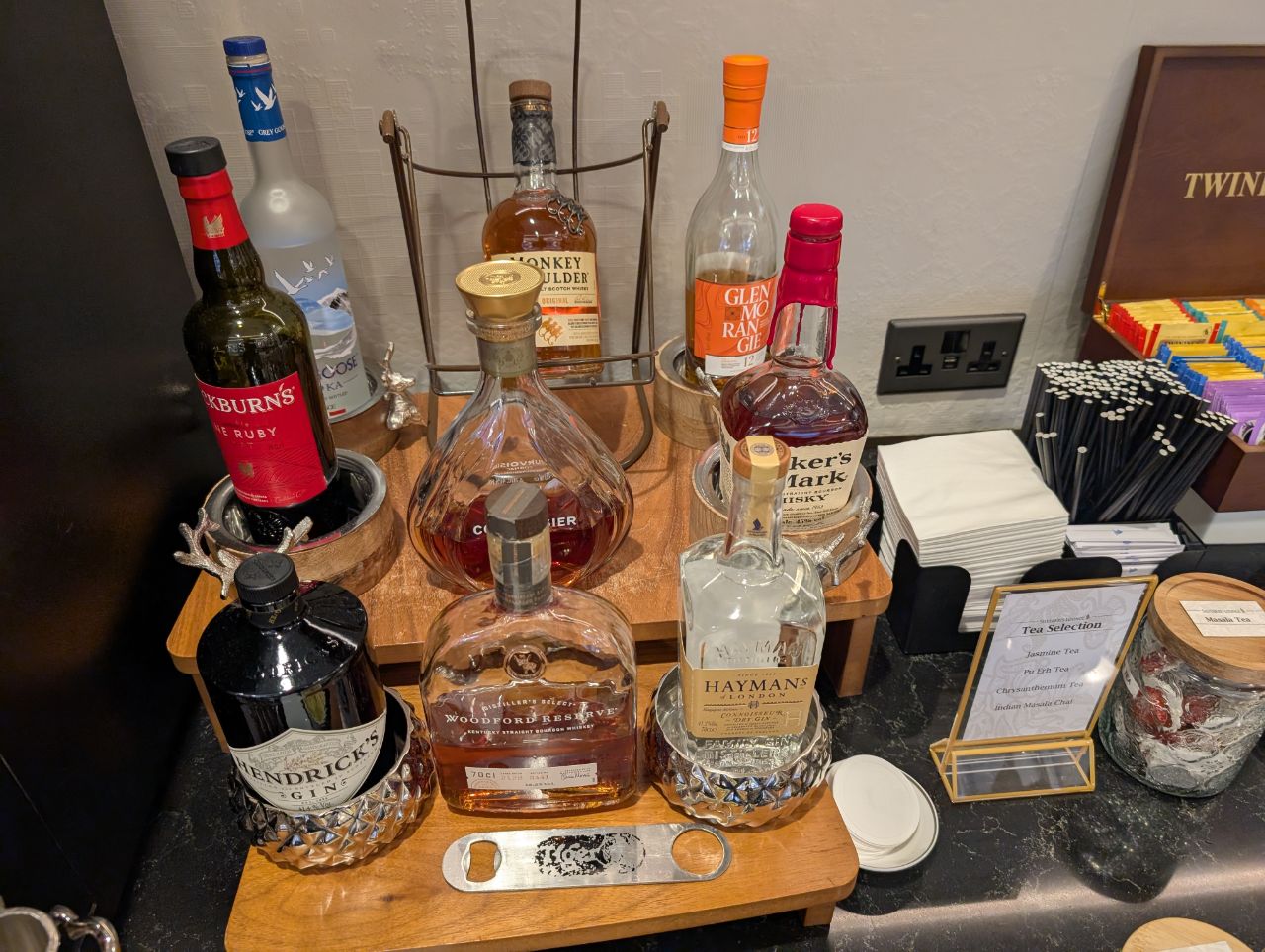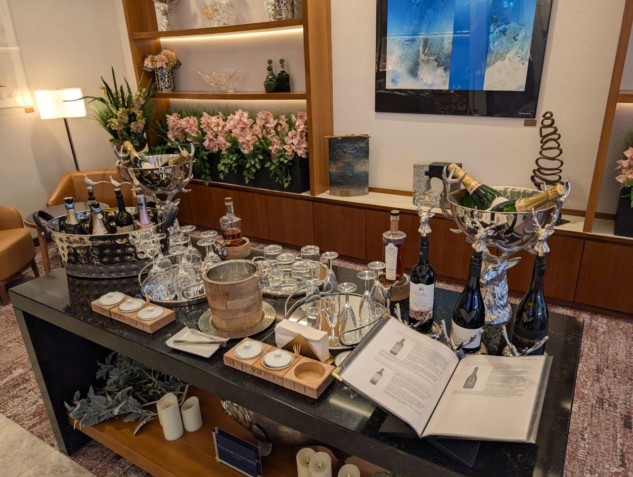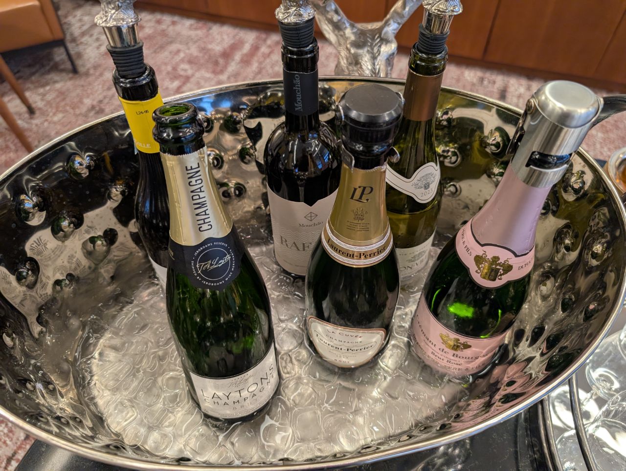For drinks, there was a self-serve area near the entrance with various whiskeys and wines, including Laurent-Perrier and Laytons Brut Reserve champagne. You can also request for cocktails, which will be made at the Business Class lounge bar and brought over.