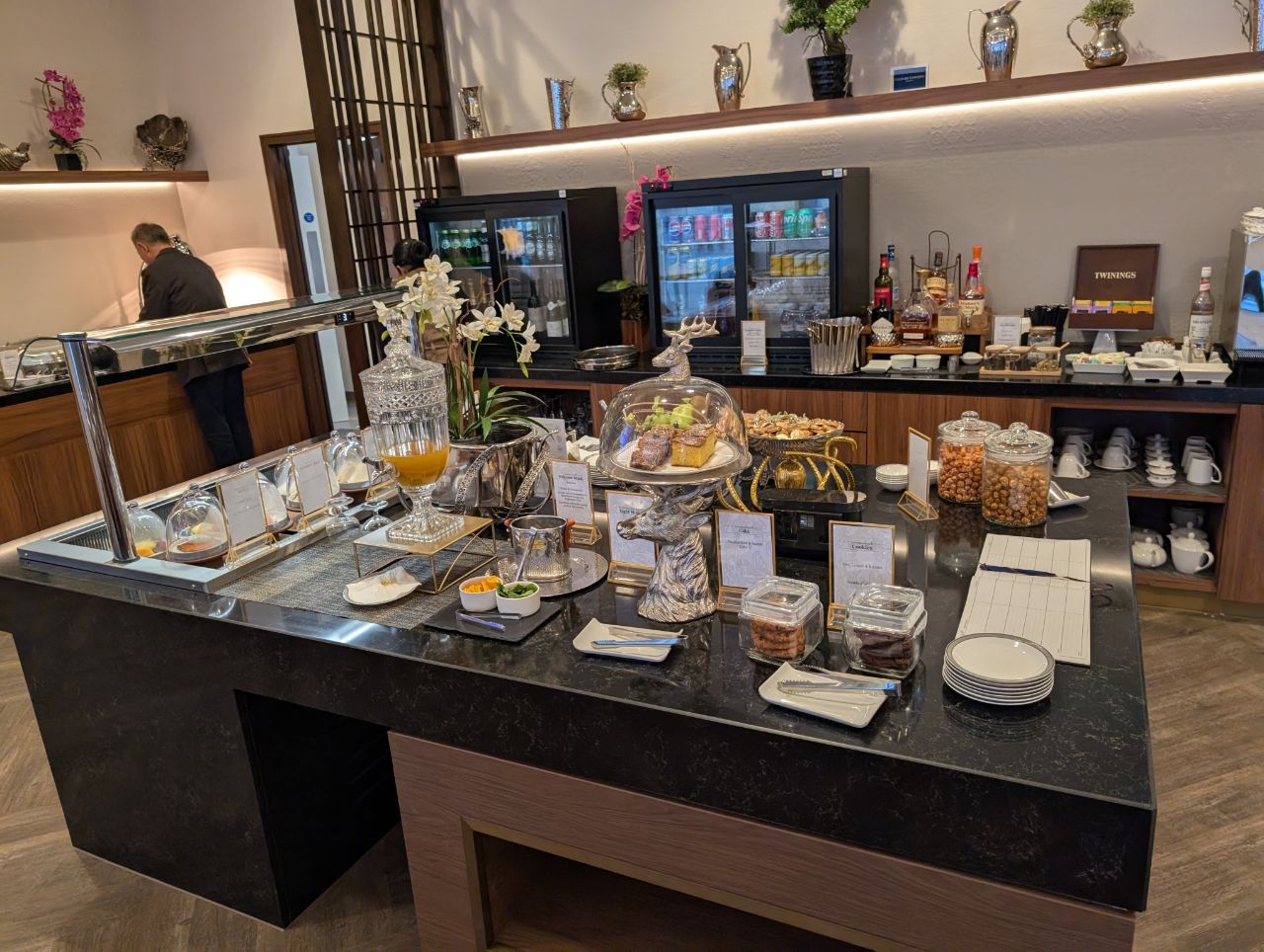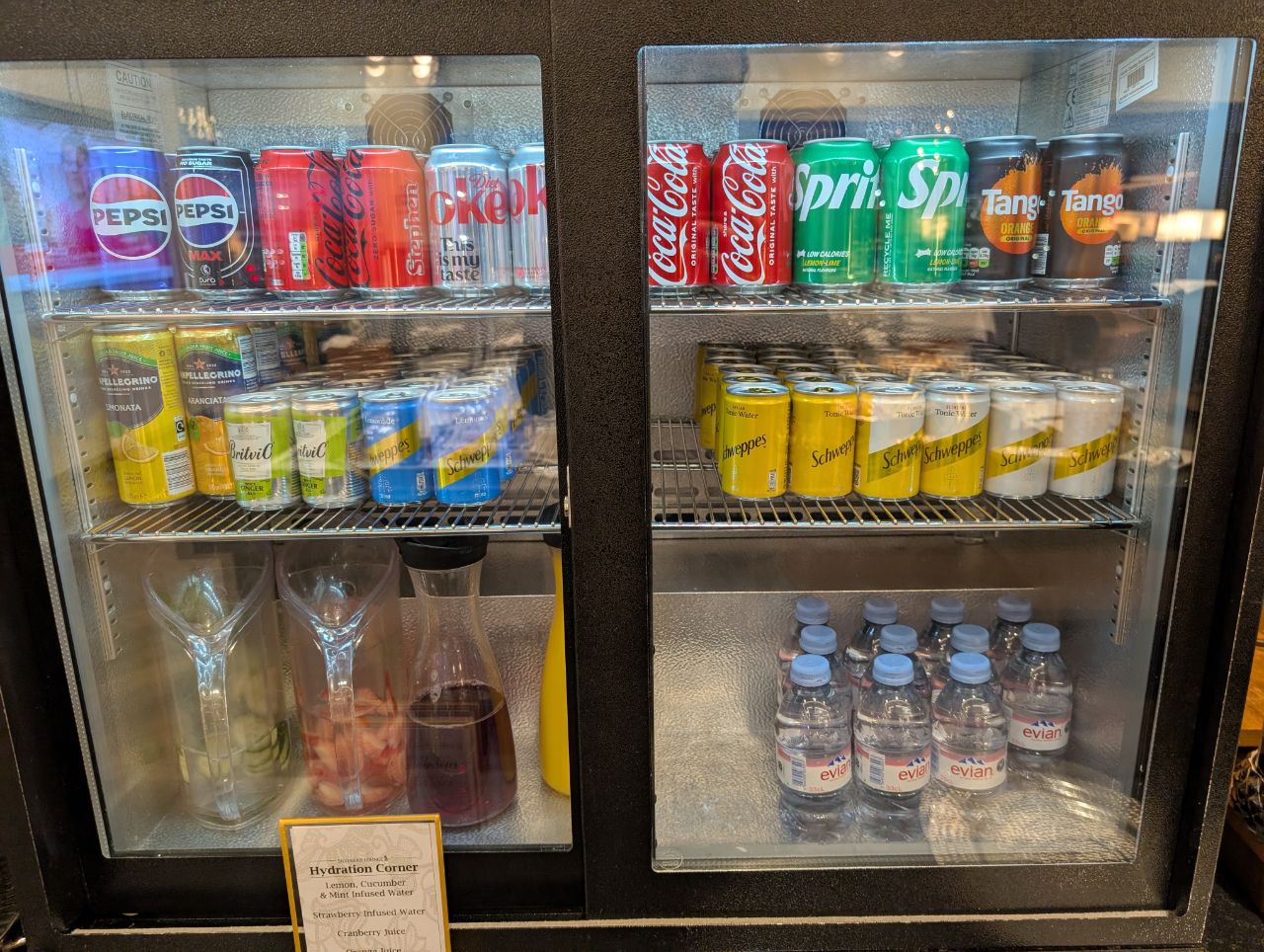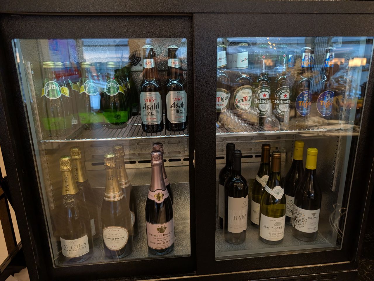 Additional drinks could be found in the buffet area, including small bottles of Evian, San Pellegrino beverages, Asahi, San Miguel, Heineken and Tiger beer.
