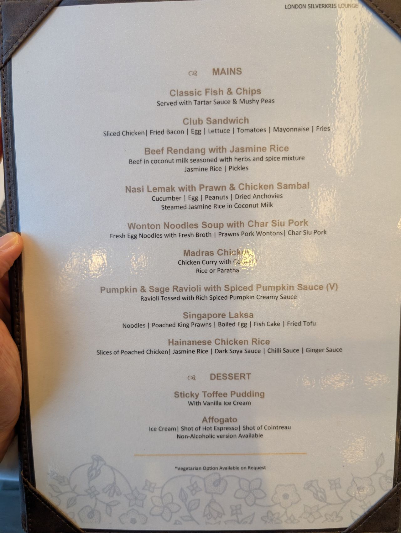 Of course, the buffet is not meant to be the main attraction. One of the “brand standards” for First Class SilverKris Lounges is an a la carte menu. Breakfast is served until 11.30 a.m, after which you have the same menu for lunch and dinner until 9.45 p.m.