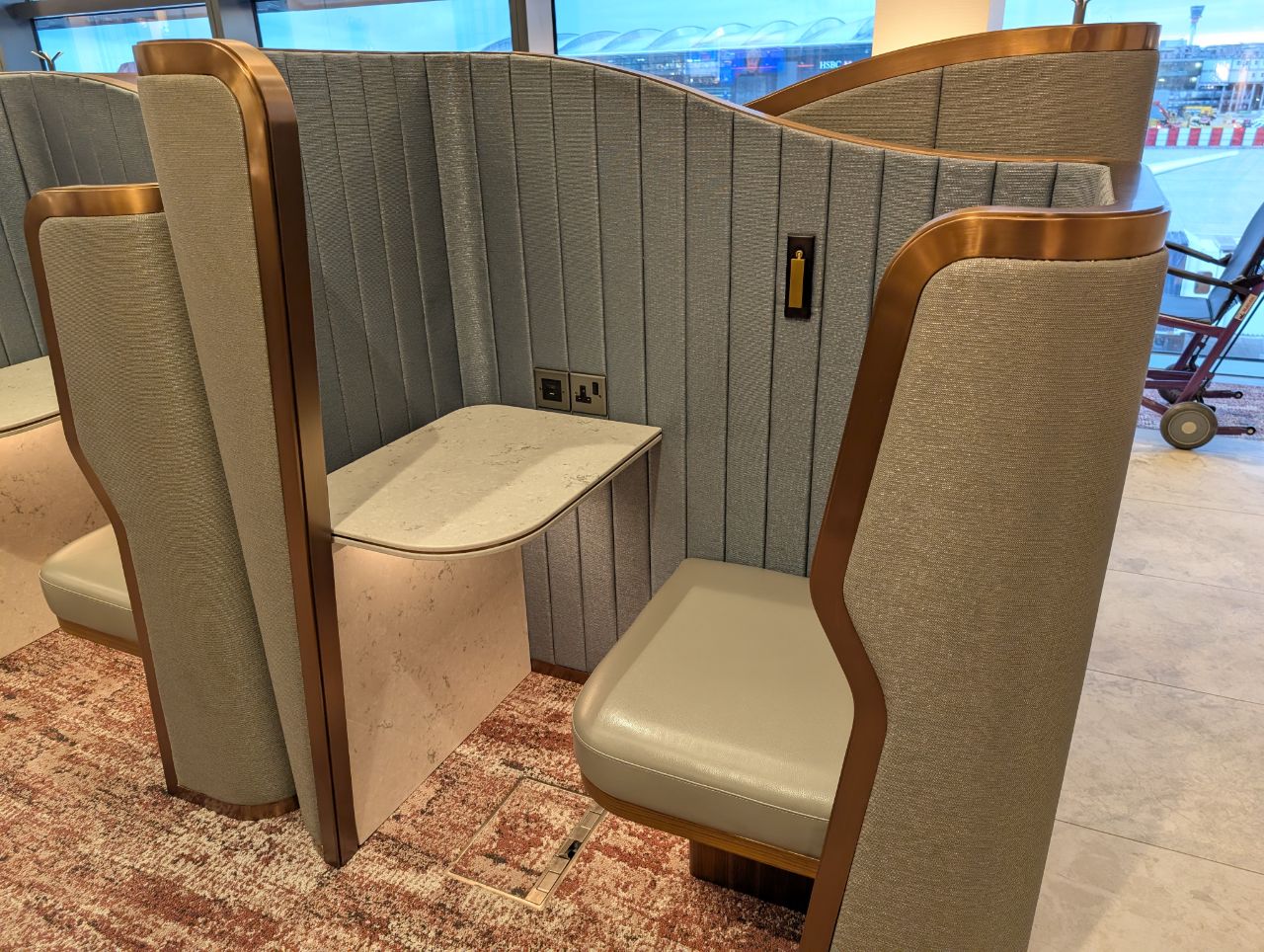 Power outlets were widely available throughout the lounge. These weren’t universal, but fortunately Singapore and the UK share the same plug type (Type G). There were also USB-A and high-power USB-C outlets.