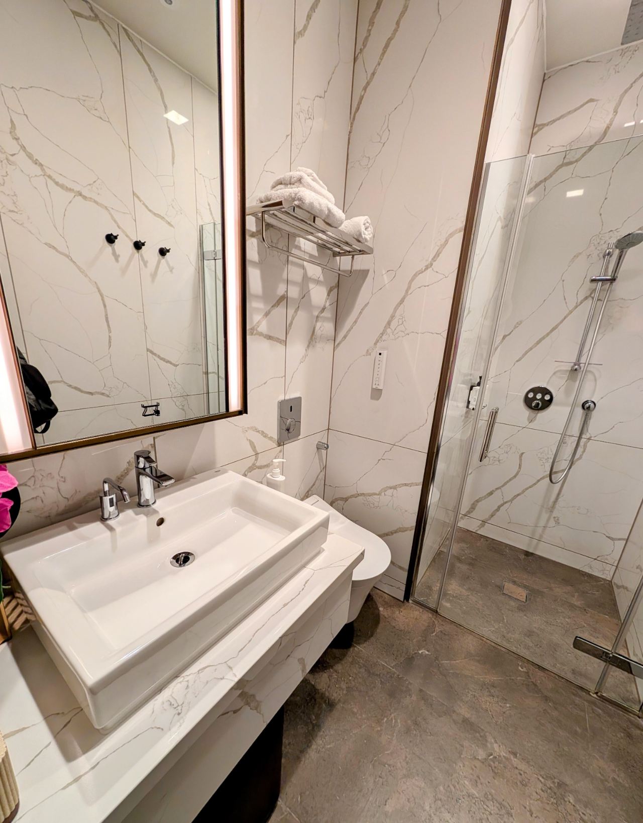 The suites are not huge, so it’ll be a bit of a squeeze if you have roll-on luggage, but at least they have electric bidet seats.