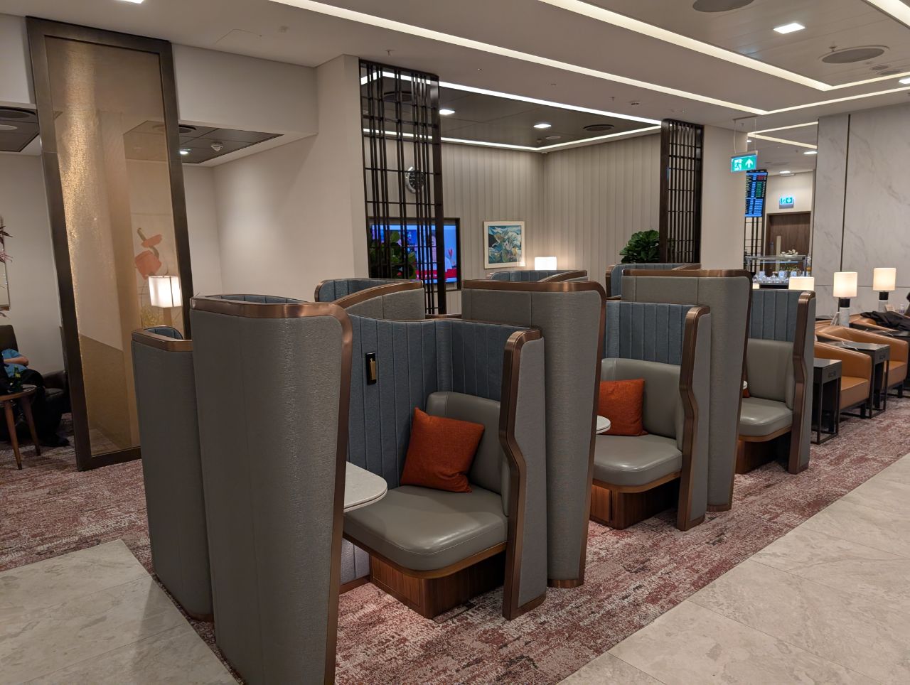 The productivity pods are the same as the ones you’ll find at the SilverKris Lounge at Changi. These semi-private spaces are great for catching up on work before boarding, with their own reading light, power outlet and charging ports.