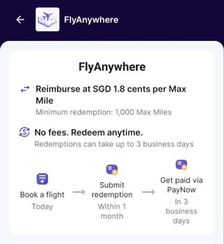 - Get reimbursed for your flight in cash, via PayNow, at a rate of S$0.018 per Max Mile