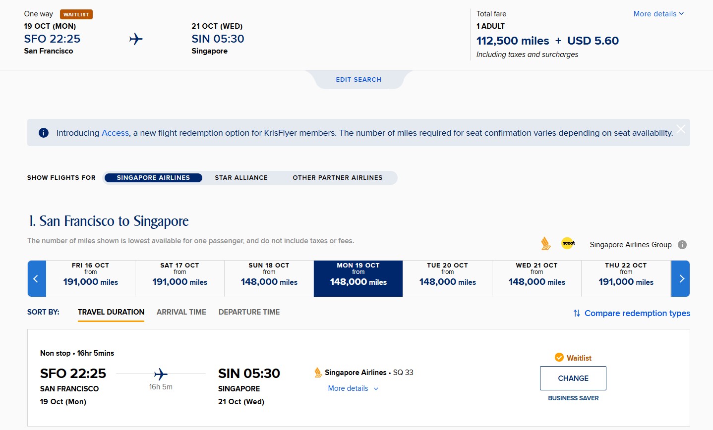 These start at S$65.20 or 3,622 Max Miles for flights from Singapore. Taxes can be even lower for other points of origin (e.g. just US$5.60 from the USA), so it shouldn’t be too difficult to cash out.