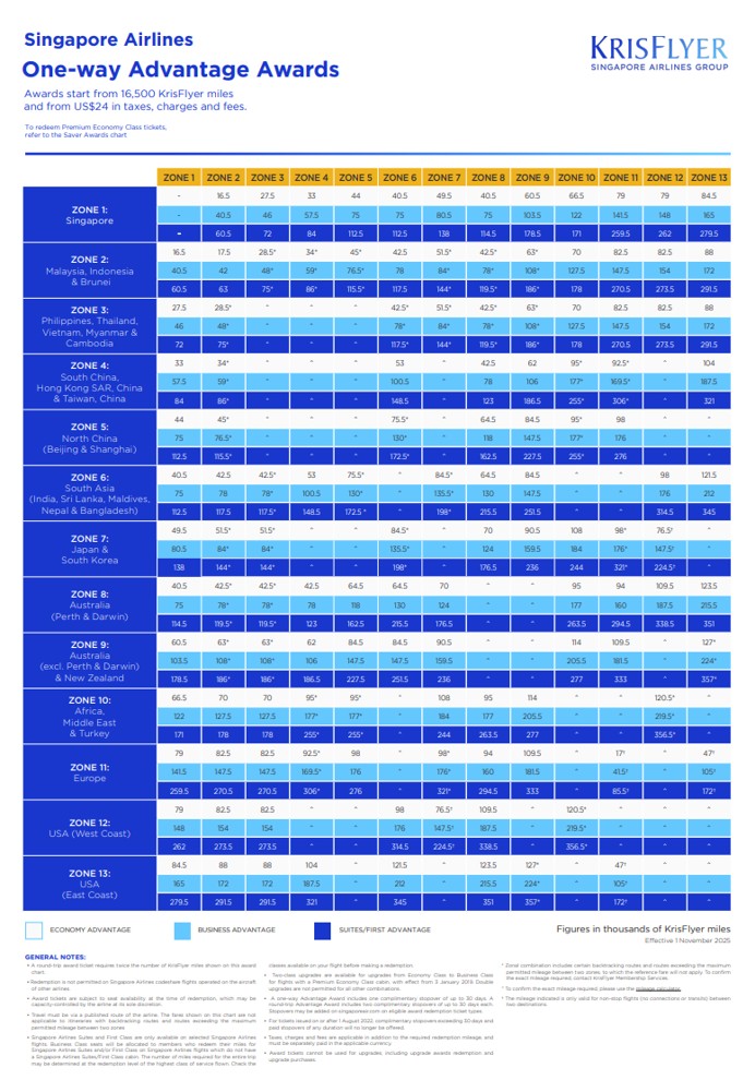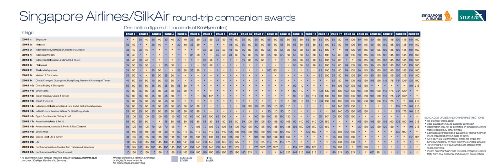 | ✈️ KrisFlyer Award Charts (For travel on Singapore Airlines) |