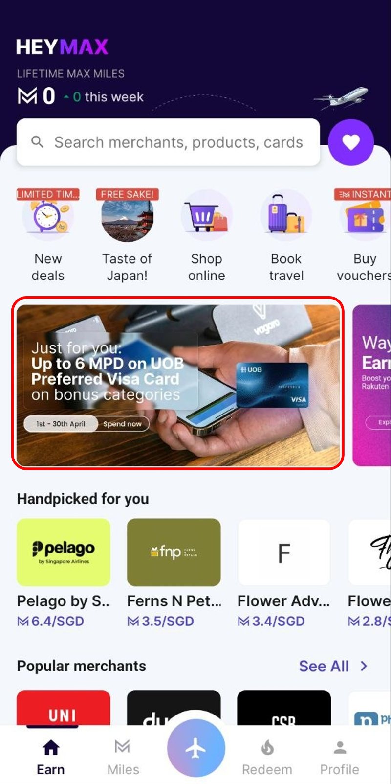 HeyMax is now offering targeted users the opportunity to earn a bonus 1 or 2 Max Miles per S$1 when spending with the UOB Preferred Visa’s bonus categories.