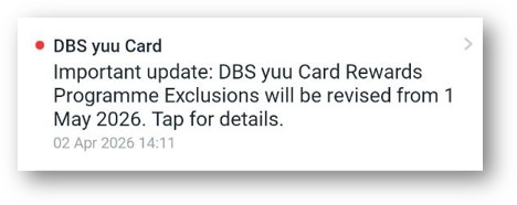 From 1 May 2026, the DBS yuu Card will update its T&Cs to add some new rewards exclusions.