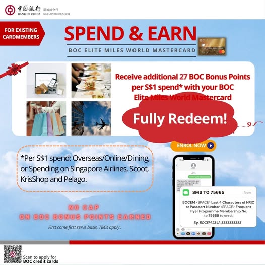 In 2025, the BOC Elite Miles Card offered a bonus 6 mpd on online and FCY spending, dining and the SIA Group, capped at 30,000 bonus miles per month. In 2024, it offered 7-8 mpd on the same set of merchants— uncapped!