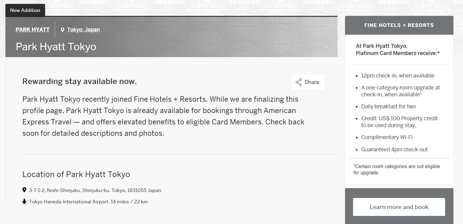 Hyatt’s Explorer feature has also been updated to list the Park Hyatt Tokyo as a resort (alongside the Park Hyatt Kyoto, incidentally).