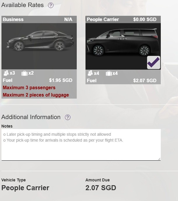 While the amount was small in absolute terms (S$1.95 for a regular sedan, S$2.07 for a people carrier), it obviously goes against the spirit of the benefit. A complimentary airport limo ride, after all, should be complimentary.
