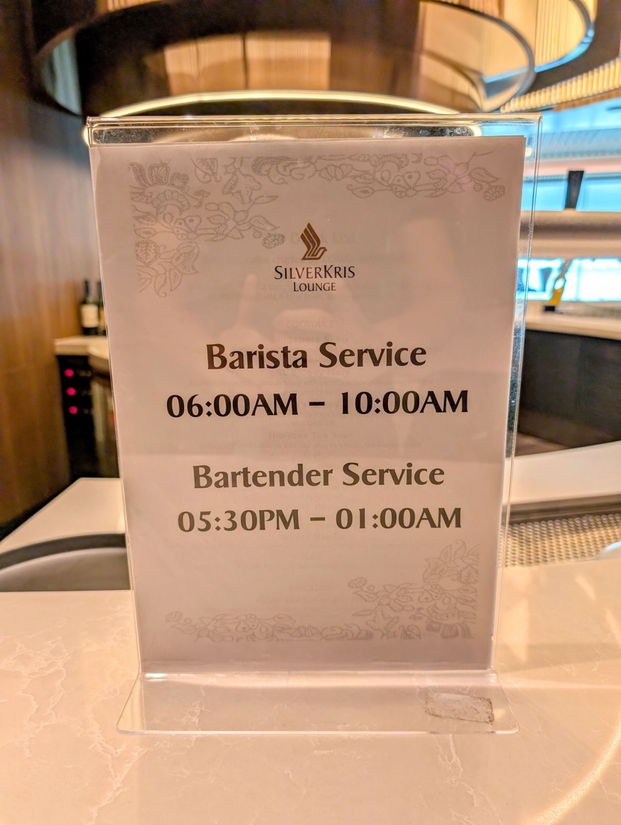 Previously, the bars in the SilverKris First and Business Class lounges operated according to the following schedule: